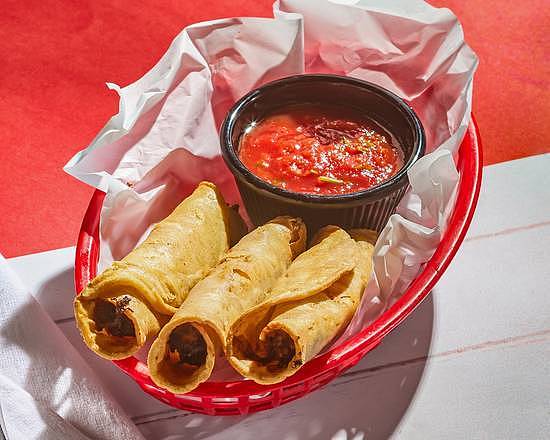 A 6″ soft corn tortilla with the filling of your choice, topped with cheese, enchilada sauce and green onions.